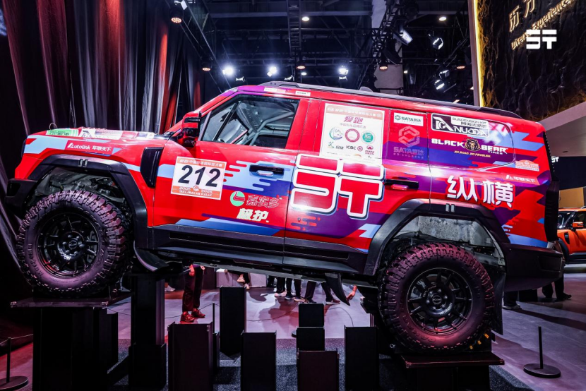 车展现场,G700环塔赛事版也同步亮相,吸睛无数。新车集阿诺达赛事专用氮气减震、黑熊赛事专用越野轮胎、碳纤维涉水喉、双防爆油箱、铝镁合金底盘护板、AISI4130珞钼钢材质专业级防滚架等装备于一体,打造全领域越野性能与越野安全。