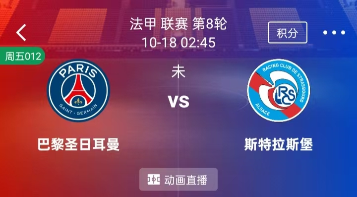 周五 012 法甲:巴黎圣日耳曼VS斯特拉斯堡