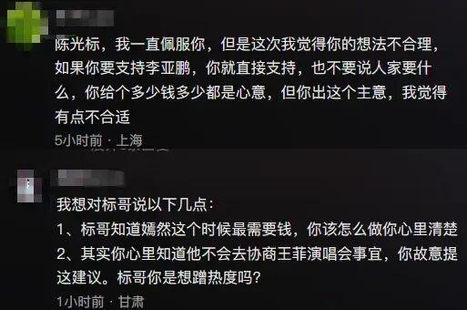 陈光标又在网上提捐款的事情,但他有个前提:请王菲办演唱会。
