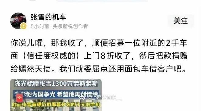 陈光标送张雪劳斯莱斯这事,折腾了好几天,竟然以这样的方式结束了!