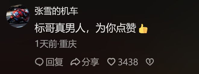 张雪在下面评论了几个字:“标哥真男人,为你点赞”。