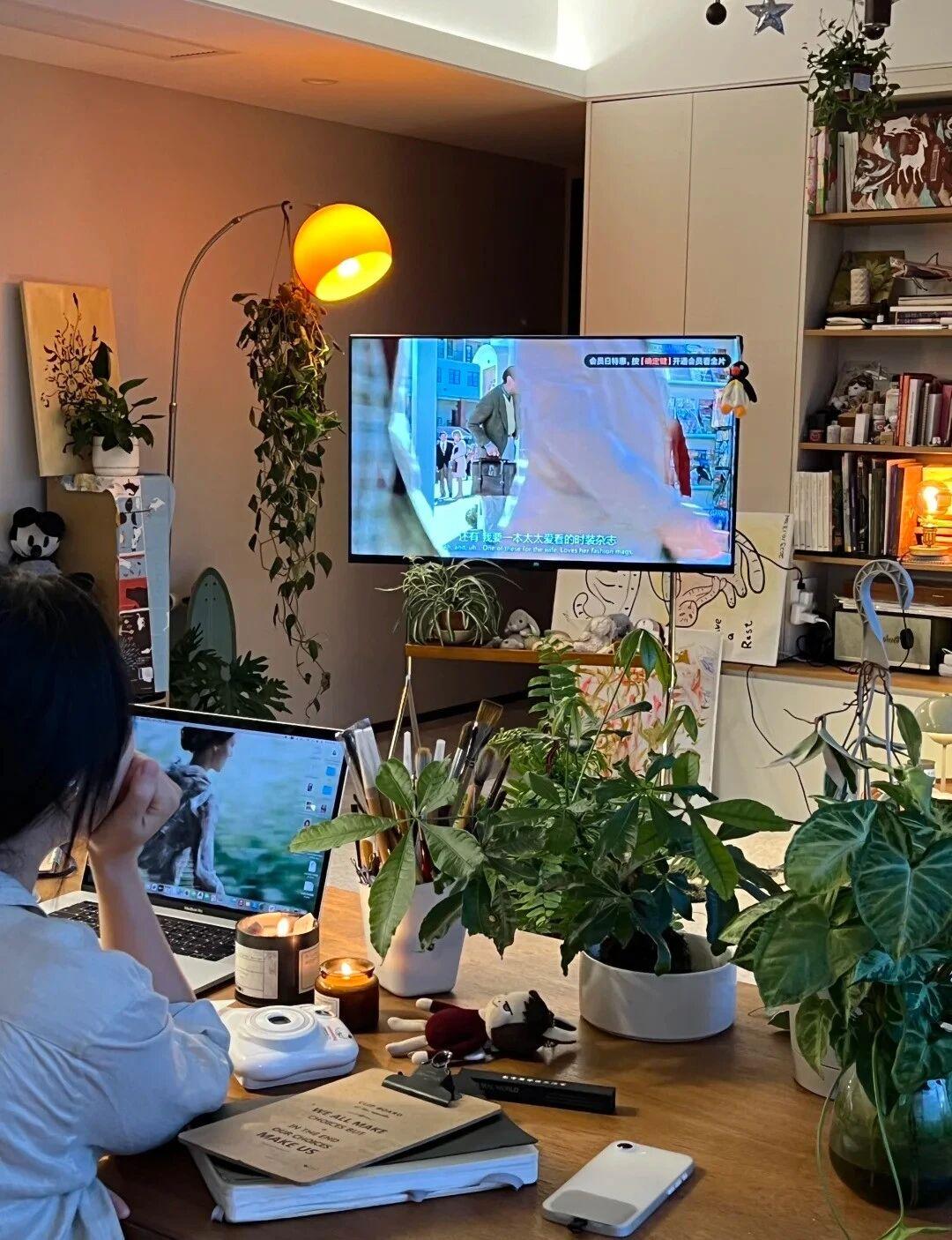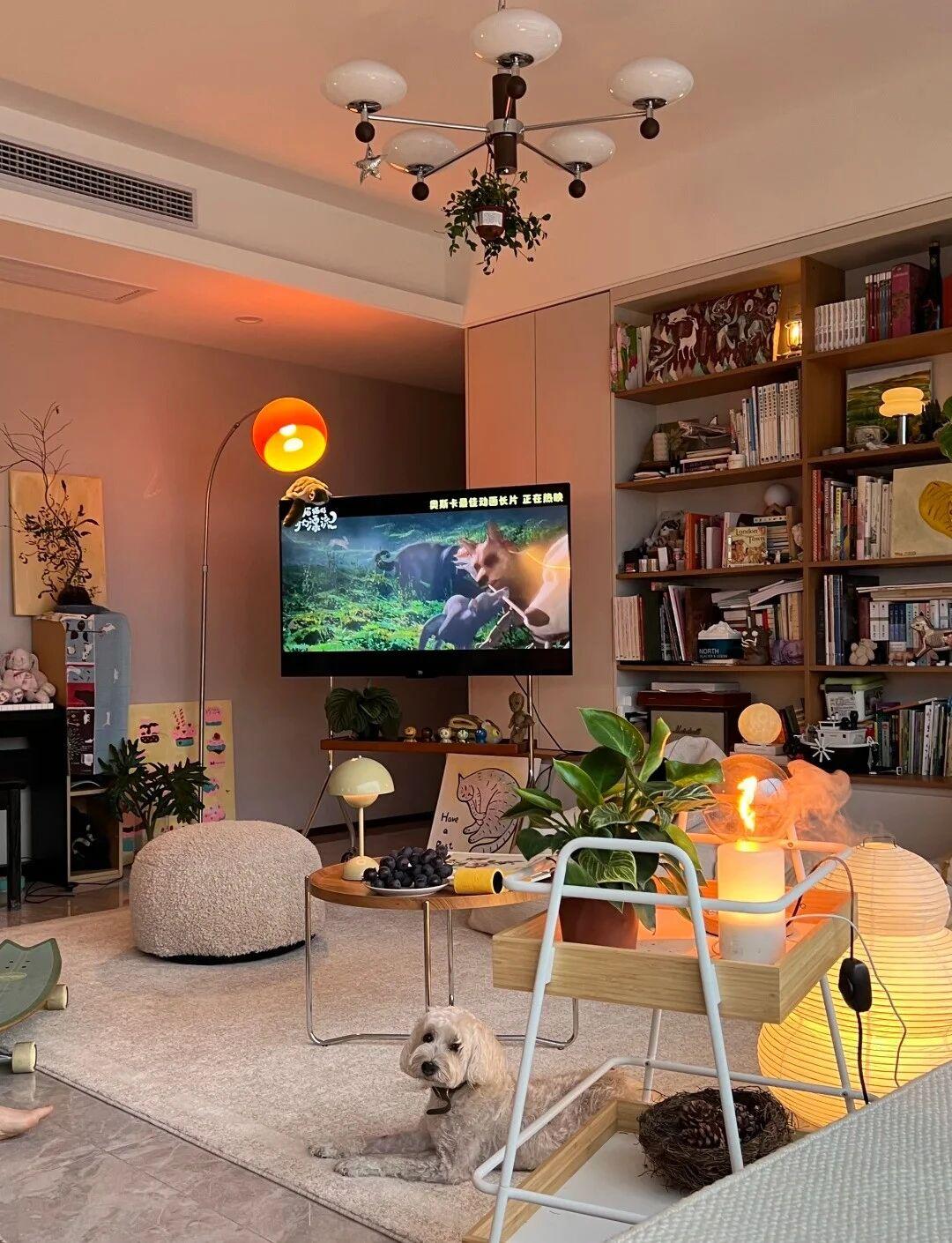 可以在这个客厅实现看电视自由,晚上也可以将它直接搬到卧室,一家人窝在床上看电影,甚至还可以挪到阳台,太巴适了。