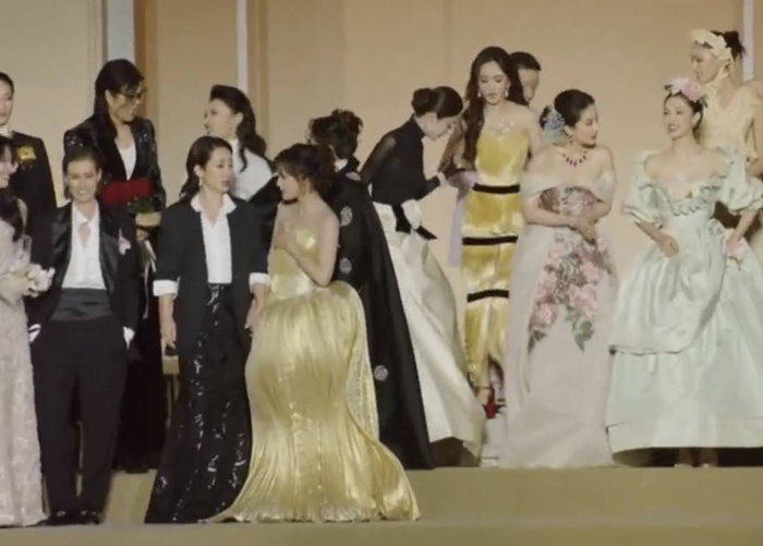 但是事后有人指出,钟楚曦的位置是工作人员指给她的钟楚曦的礼服太重,根本无法自如移动。现场视频显示,她虽然有抬手示意的动作,但因为礼服太重,身体根本无法横向移动。在这之后又传出钟楚曦身上那件1987年的Nina Ricci古董高定就被挂上闲置平台