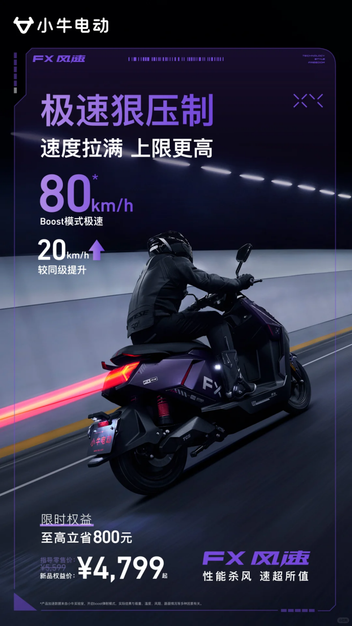 在电摩市场,“性价比”与“强体验”往往难以兼得,但小牛FX风速的出现,打破了这一魔咒。对比同价位的极核AE4 SE和更高定价的AE4 MAX MY25,FX风速款在动力、配置、价格三大核心维度全面领先,堪称“同价位无对手,跨价位不虚标”的存在。