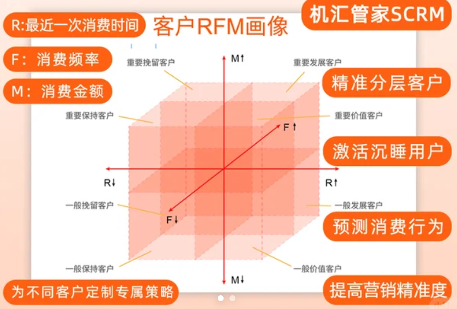 根据RFM模型对沉睡时长、过往偏好、客户价值进行快速精细分类。