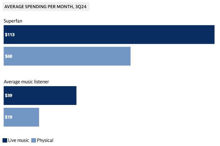 在美国,每五名音乐听众中就有一人至少是某位艺术家的超级粉丝,而消费者数据显示,英国有30%的听众属于这一类别。