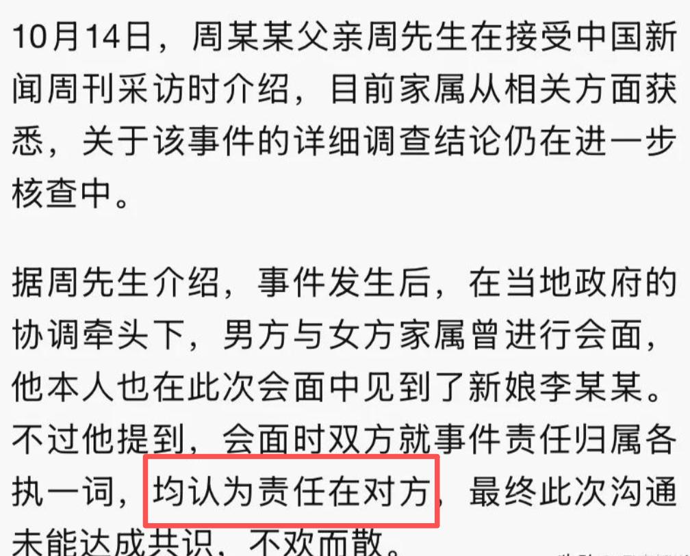 因为此前,男方家和女方家在当地政府的牵头下,曾进行过一次会面,然而,这次会面并未达成任何共识,反而因为责任归属问题不欢而散。