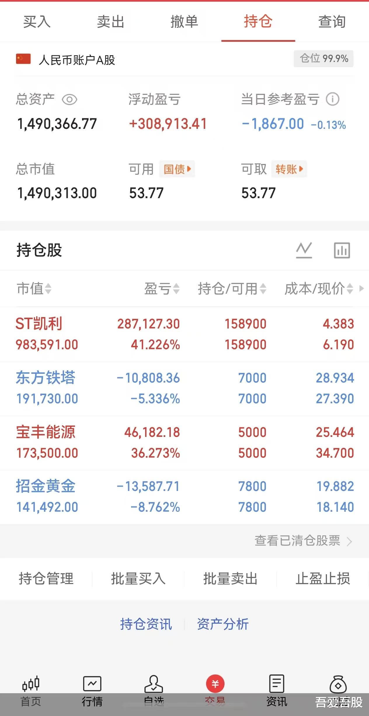 从操作上来看,现在一共持有四只股,重仓的ST凯利,这两天又有所回调,等到我也好累,可是没有办法,做股票最看重的就是确定性,假如银行定存能给我10个点的年化,我愿意把大部分资金存在银行,而不是去买股票。这个票虽然慢,但也是值得的,等的久了,也能赚不少。