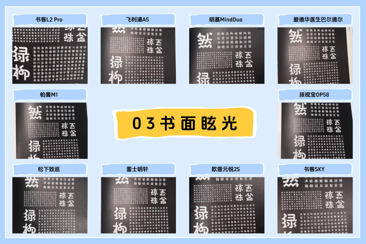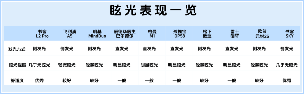 第一梯队(几乎无眩光):书客L2 Pro、书客SKY