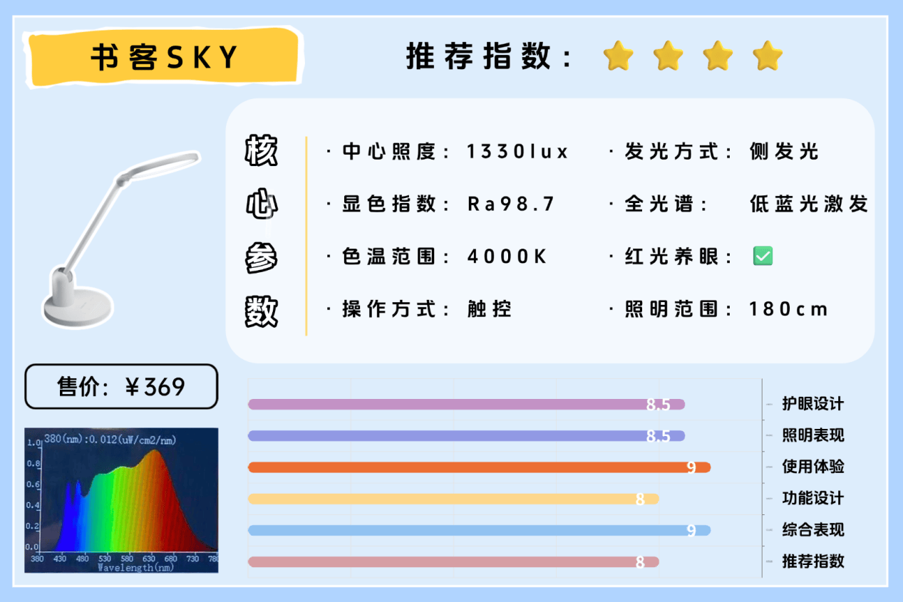 如果预算有限,但又想要靠谱的护眼灯,书客SKY完全是闭眼入的那种。