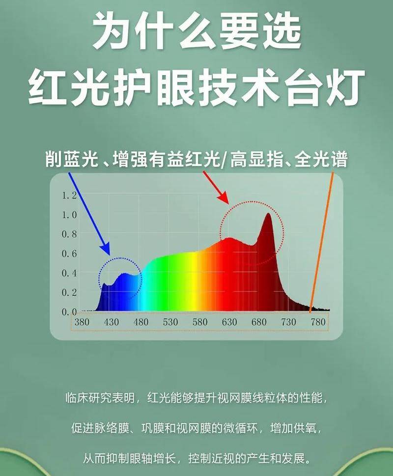 2、低蓝光、高红光光谱设计(护眼兼养眼)