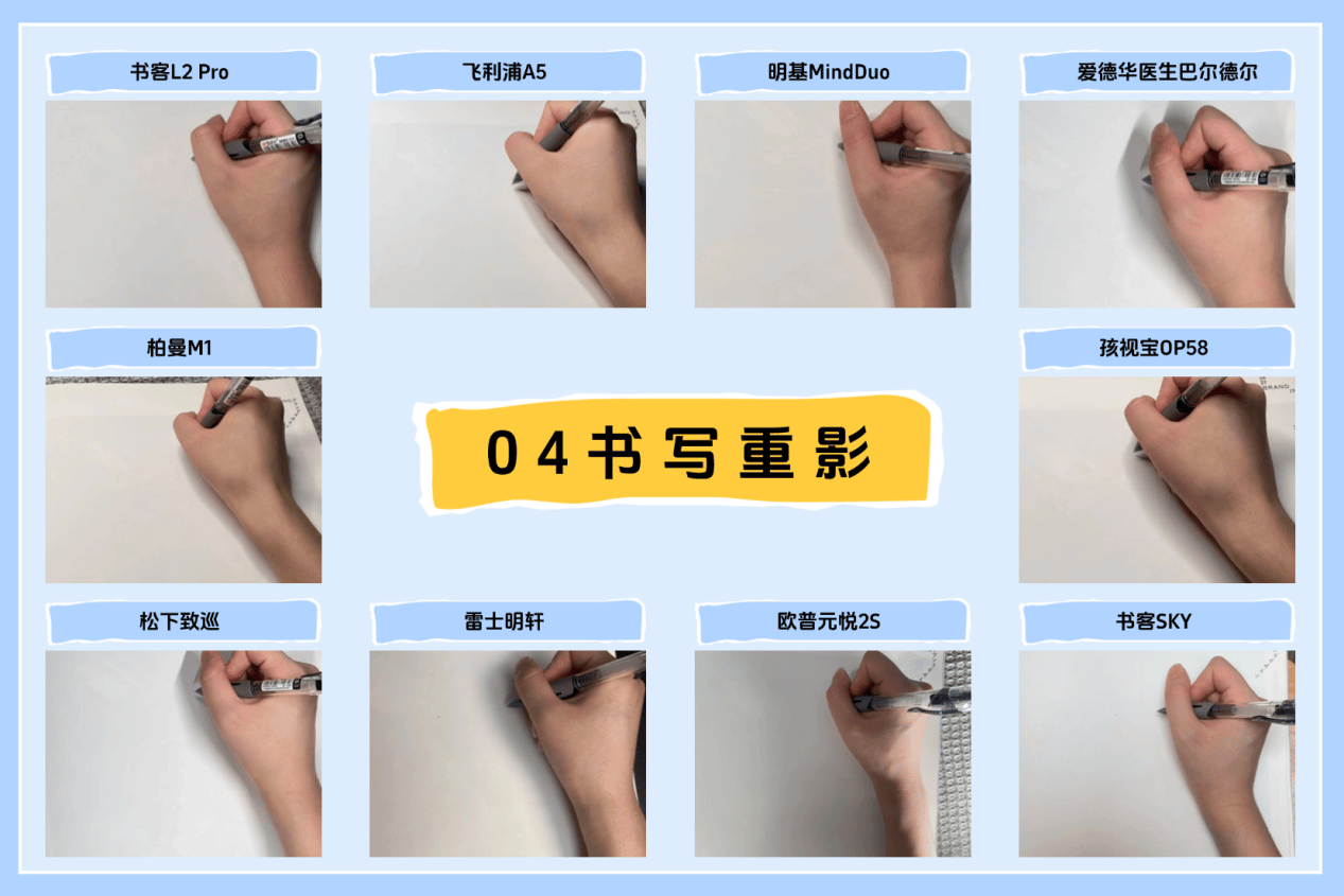 飞利浦A5和明基MindDuo等台灯有轻微重影,重影颜色较淡且面积较小,不影响日常书写,属于可接受范围。