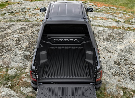 车侧部分,腰线设计非常锋利,并且还配备了侧踏板、车顶行李架和龙门架,实用性拉满。车尾部分,新车依旧采用C字形尾灯设计,与前大灯遥相呼应。另外,其还配备17英寸轮毂和AT越野轮胎,并具备3500公斤的牵引资质。