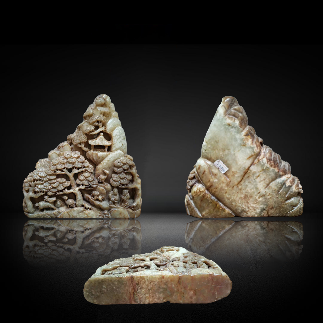 山子摆件是中国传统玉雕的经典形制,源于宋代,至明清尤其是清代中期达到鼎盛,多以玉石为材,模拟自然山水景致,兼具陈设赏玩与文化寓意功能。清代晚期,社会审美虽不及乾隆时期的繁缛宏阔,但仍延续了重工艺、尚题材的玉雕传统,此件山子摆件便是这一时期玉雕工艺的代表性遗存。