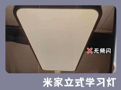 米家立式学习灯通过优化电路设计与高精度恒流驱动芯片,有效抑制电流波动,手机拍摄没有明显可视频闪,频闪控制较好,光源输出稳定。