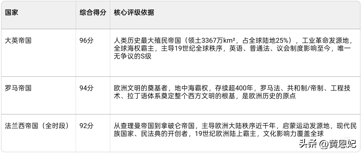 ️ S级:时代霸主(综合得分≥90分,人类历史级强权)