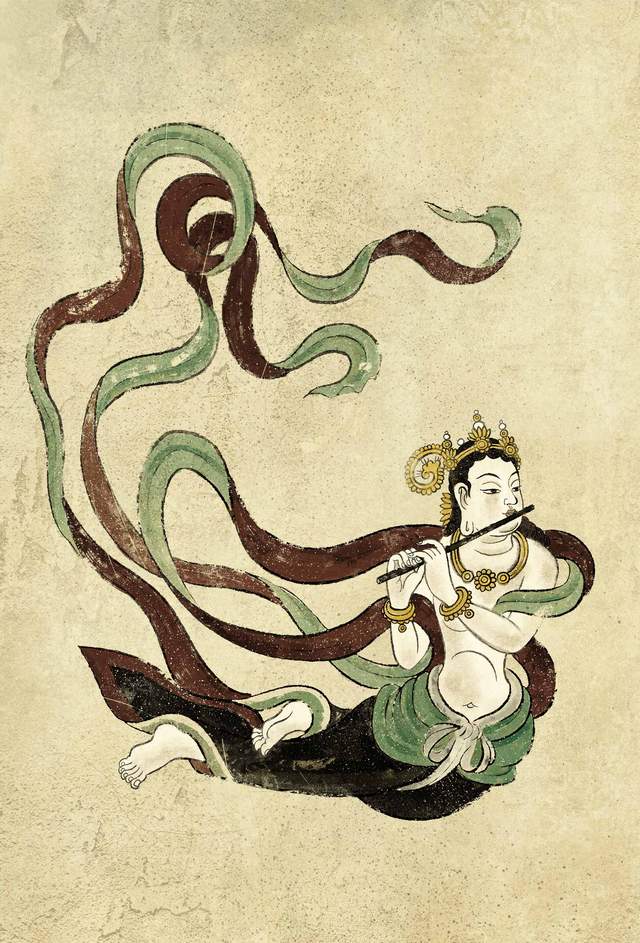 榆林窟15窟(西夏) 伎乐飞天 吹箫