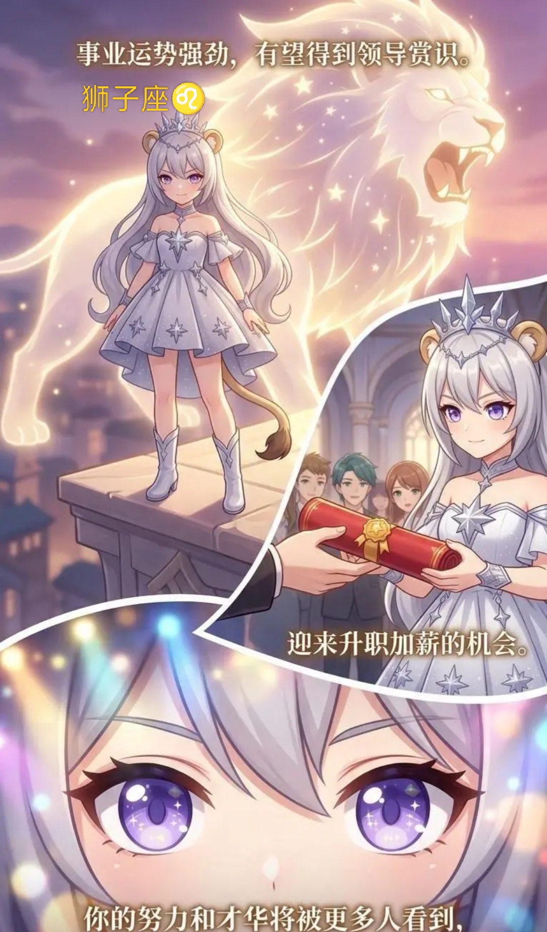 狮子座:事业运势强劲,有望得到领导赏识,迎来升职加薪的机会。你的努力和才华将被更多人看到,是展现自我的好时机。