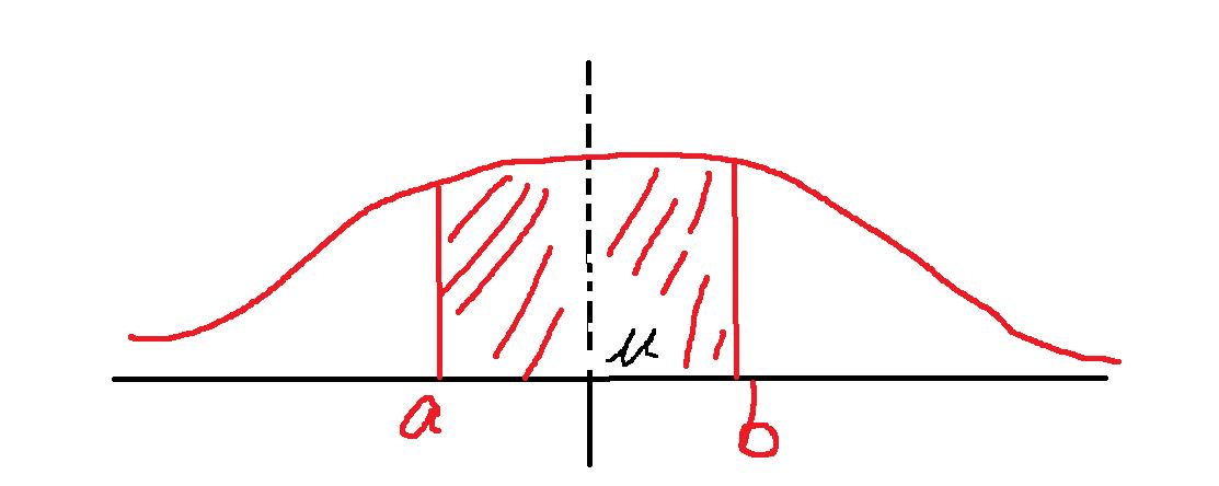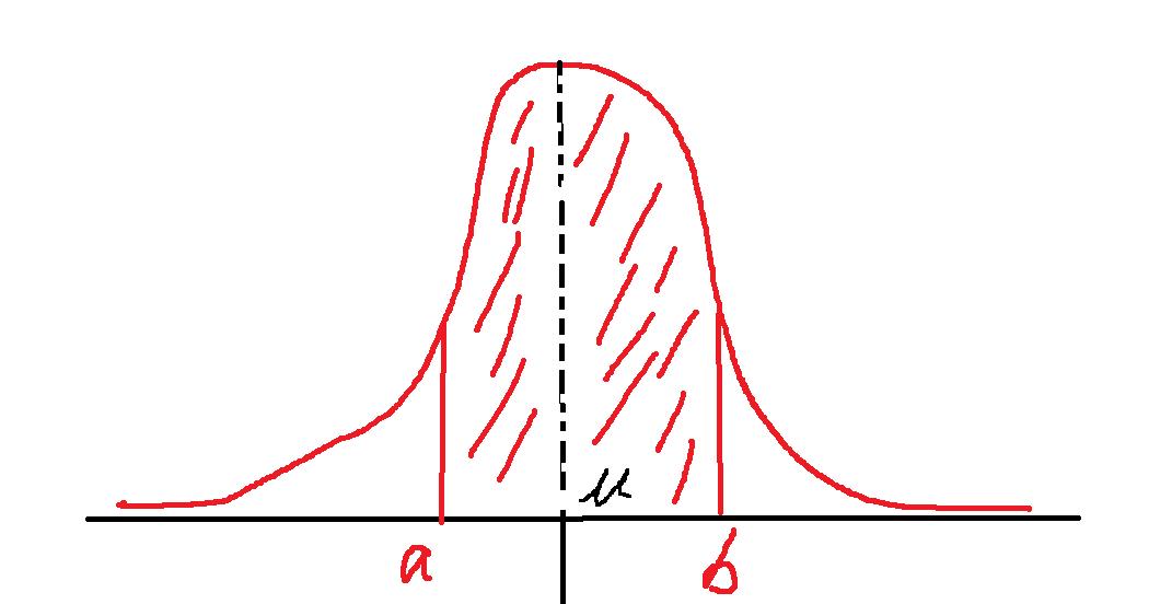 就是从a点跟b点以垂直于x轴的方向出发,连接到这个函数图像,围成的面积,就是一年后的收益率落在a跟b之间的概率: