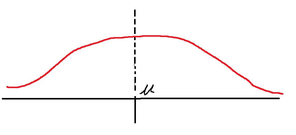 首先概率密度函数图像与x轴围成的面积必然是1(对应着概率100%),而这图像的线是往两边无限延申的,所以越往两边概率密度越低。