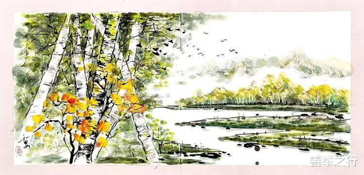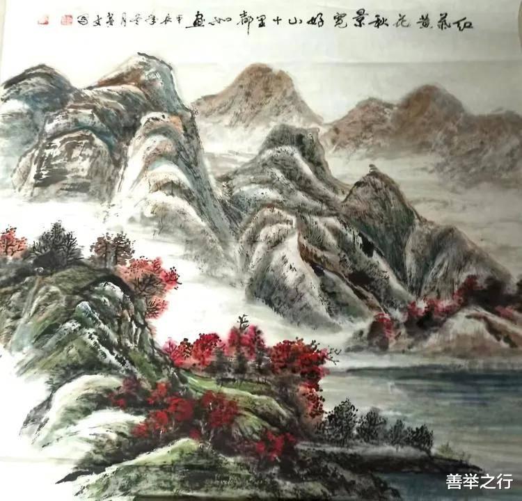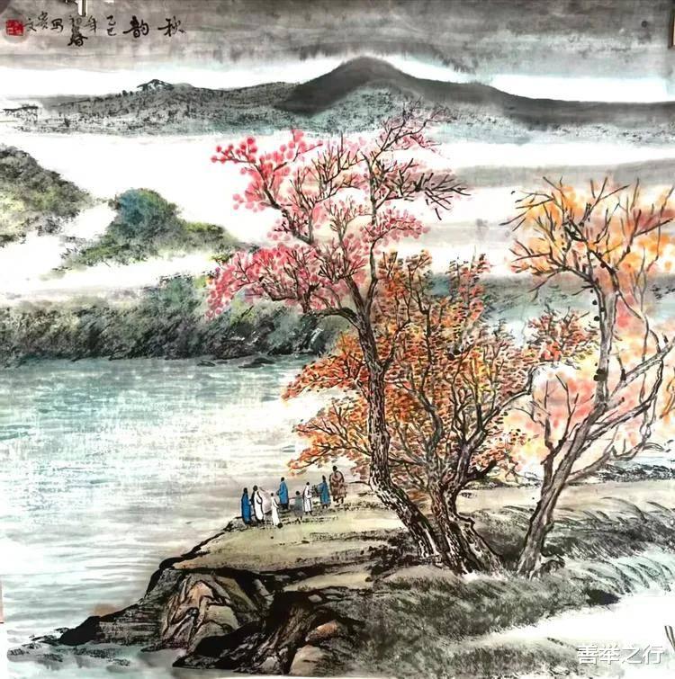 苏贵文老师国画山水 碧水红叶赏秋韵