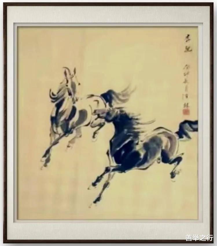 汪林老师国画写意作品 双骏驰骋迎新春