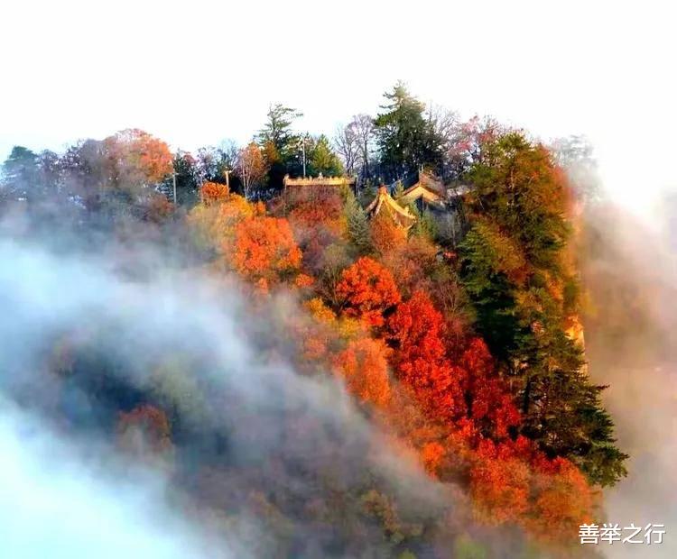 黄万君老师摄影——红叶晨雾映崆峒