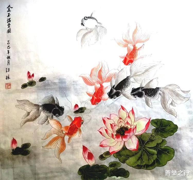 汪林老师工笔 錦鲤戏蓮