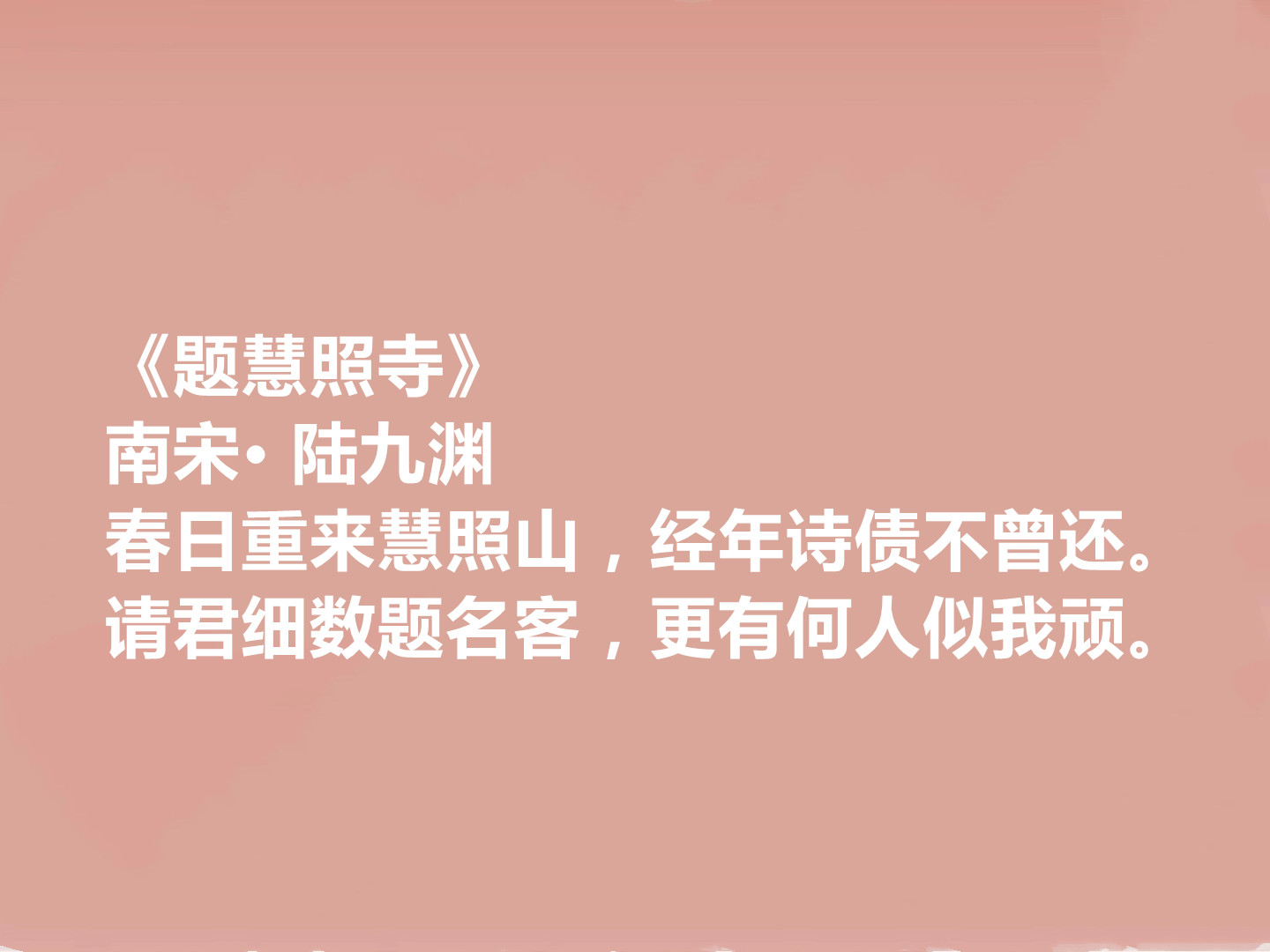 陆九渊的诗既是心学思想的具象表达,也是他人生理想的生动写照。寥寥数十篇诗作,承载着儒者的家国情怀与哲人的深邃思考,其“宇宙便是吾心”的气魄与“悦亲端的在诚身”的质朴,共同构成了独特的诗歌魅力,至今仍能给读者带来思想的启迪与精神的共鸣。其诗歌虽数量不多,却独具魅力——将“心即理”的哲学思辨融入自然清新的文字,语言平易简约,情理交融,既无雕琢之痕,又含深刻义理,成为心学思想的生动载体,下面我们来欣赏他的十首诗。