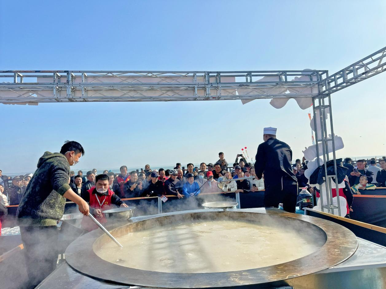 (近3米巨锅现场熬煮有机鱼汤供市民游客免费品尝)