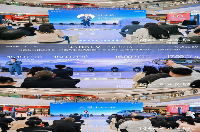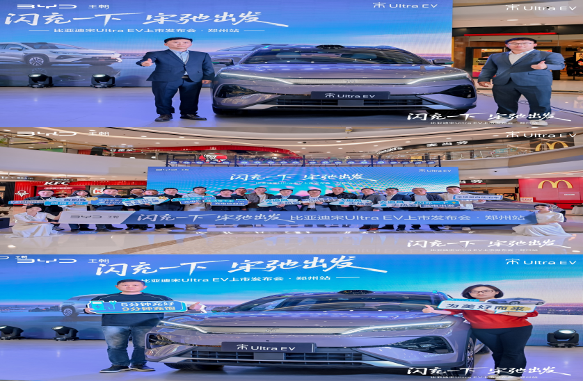3月29日,比亚迪宋Ultra EV上市品鉴会在郑州高新万达启幕,我们作为媒体到场,见证这款王朝网首款闪充纯电SUV正式登场,实际体验后能感受到其产品诚意。现场氛围热烈,国风舞蹈开场添彩,乐队演绎、茶歇等环节有序开展。据悉,品鉴会自27日起开启两天静态展示,吸引了媒体同行、迪友及准车主到场关注。宋Ultra的闪充速度是核心亮点,工作人员用“5、9、3”诠释优势:充电5分钟满足日常通勤,10%充至97%仅需9分钟,极寒环境多充3分钟,实现充电与加油同速,缓解纯电出行焦虑。针对充电成本与电池安全,其提供全国闪充站1年免费服务;第二代刀片电池经严苛测试,500次闪充循环后仍安全可靠,相当于用车15年、行驶30万公里。新车揭幕亮点十足,六款车色源自自然山川,尽显东方美学;超100项核心配置全系标配,搭配“0元购、0元用、0元养”购车权益,诚意拉满。上市发布后,核心媒体代表上台分享体验感受,从专业角度肯定了宋Ultra在闪充速度、电池安全、智能驾驶及空间表现等方面的越级实力。随后,领导、嘉宾与媒体共同登台合影,活动进入自由品鉴环节,现场咨询氛围浓厚,销售团队针对车型亮点与购车政策进行细致讲解,赞一个!