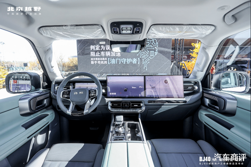 车内依然沿用了BJ40的设计,全系标配10.25英寸液晶屏、两块15.6英寸高清液晶屏,车机内置骁龙8155芯片,配备16GB的运行内存和128GB的存储空间,支持AI语音情景式对话,交互体验在同级中还是比较出色。