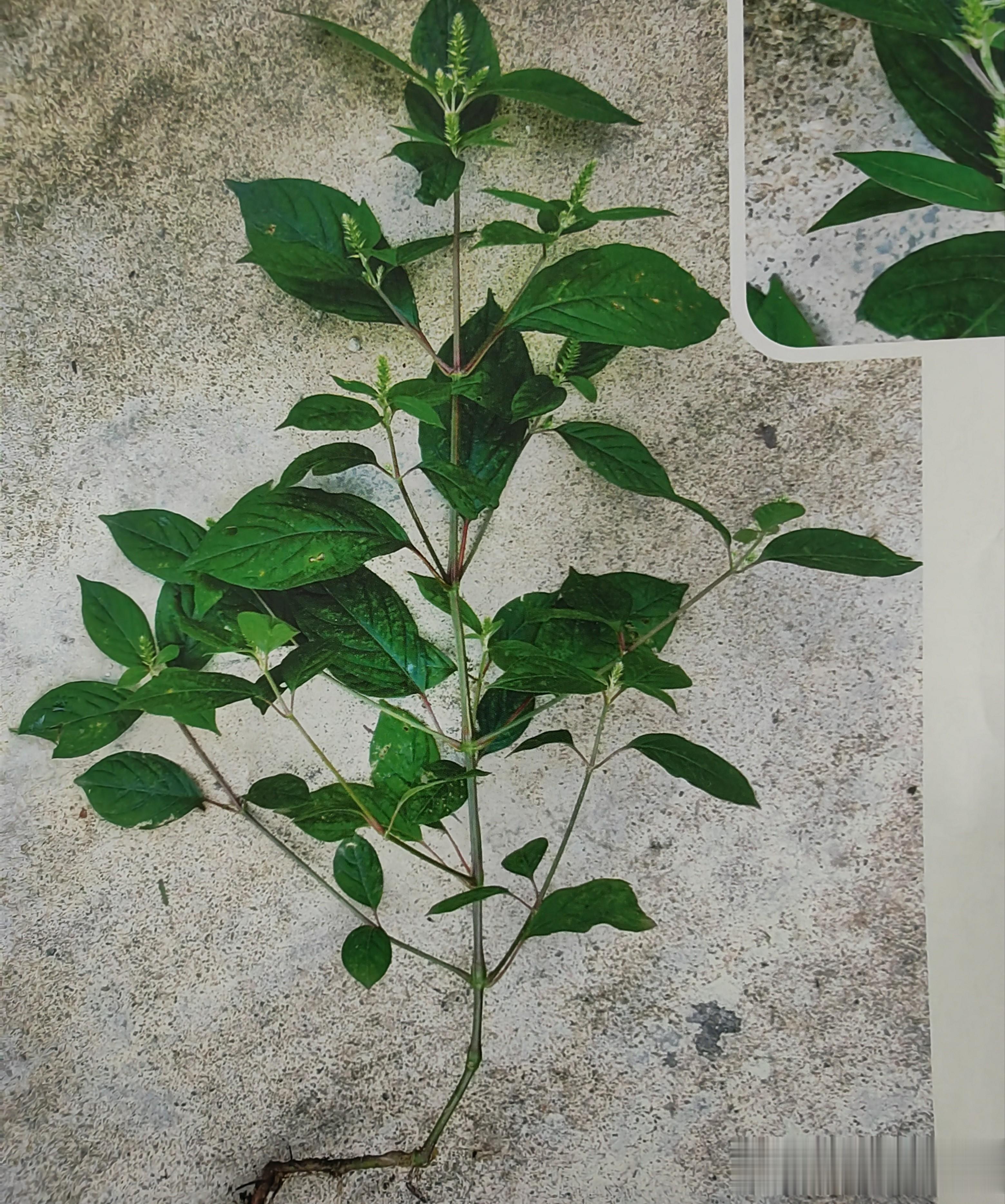 李时珍在《本草纲目》中载牛膝草说:其叶似苋,其节对生,故俗有山苋,对节之称。