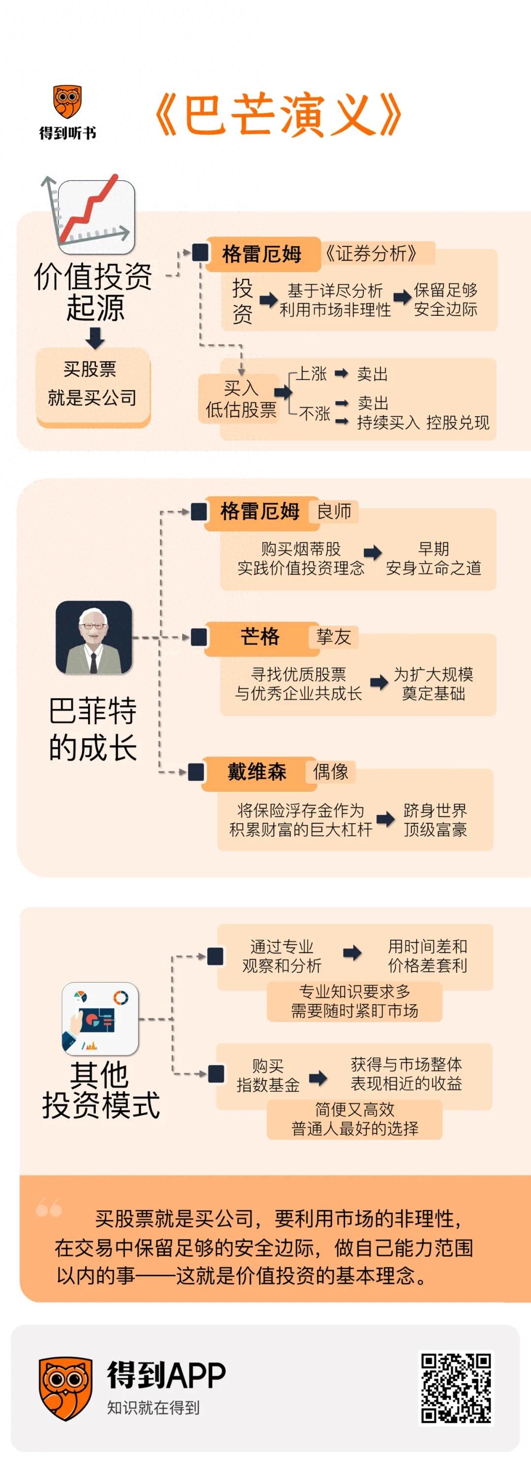 到这里,可以简单地说:买股票就是买公司,要利用市场的非理性,在交易中保留足够的安全边际,做自己能力范围以内的事——这就是价值投资的基本理念。