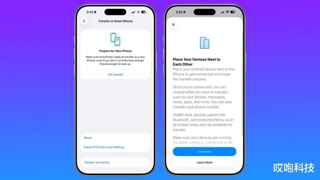 值得一提的是,这是苹果和谷歌联合开发的功能,所以原生安卓系统也会有「从安卓传输至IOS」功能,双向奔赴。至于国内的安卓手机什么时候能适配,就得看厂商积极不积极了。2.通知转发允许将 iPhone 上的通知转发到第三方可穿戴设备,也即是说 Apple Watch 以外的配件(智能手表)也能显示通知了。