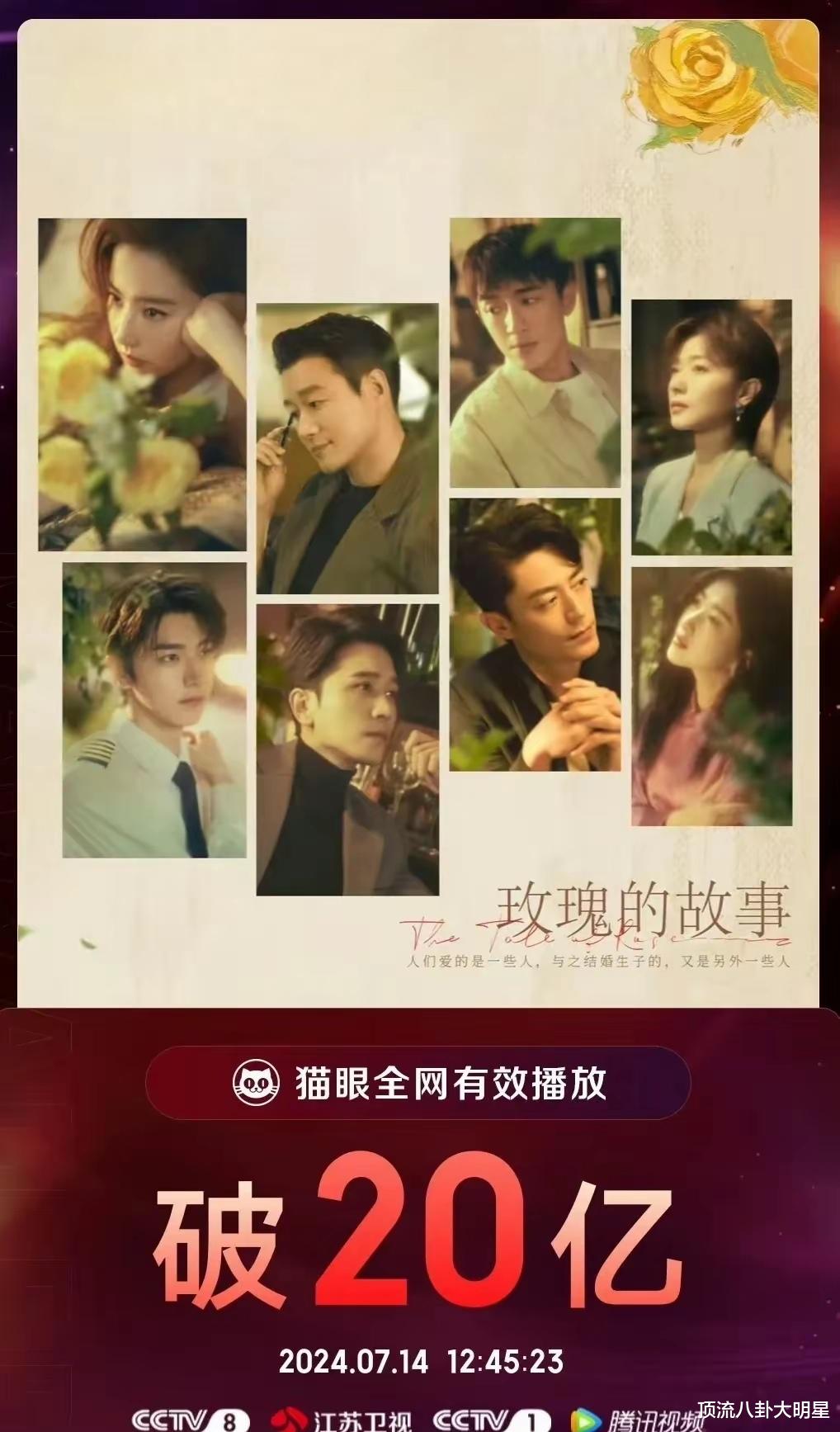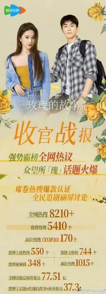 《玫瑰的故事》官方战报,百亿爆款剧集,剧集笔记总曝光191亿+;剧集笔记发布数76万+,角色搜索量,黄亦玫遥遥领先,破亿,20次原生热点造就爆款,累计曝光4亿+;玫瑰的故事就是各平台开花,全方位爆!