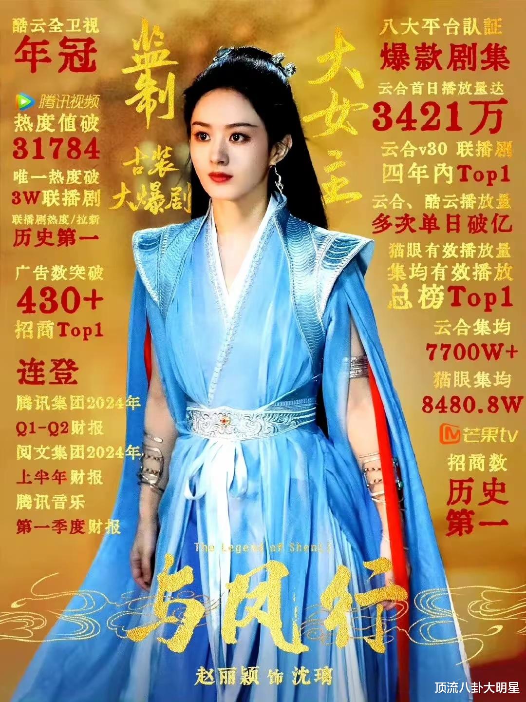 林更新饰演的行止威武神通广大,袖子一挥排山倒海的火焰,特效非常壮观,赵丽颖饰演的碧苍王沈璃,又美又飒,用一杆银枪平四海战胜八方,与凤行集均播放累积7854万+,总播放30.63亿!