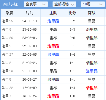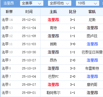 历史交锋数据一边倒地倾向里昂。双方近6次在洛里昂主场的交手,里昂赢了4场。上一次在这里对决(2024年3月),里昂就以2-0获胜。