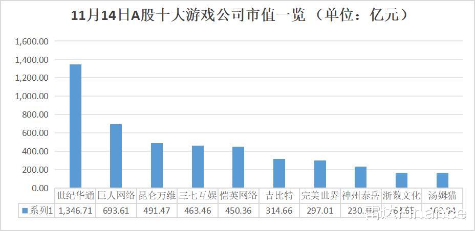 与此同时,公司的价值也被资本市场发掘。年初至11月14日,世纪华通累计上涨达252.72%,最新市值1346.71亿元,超过行业第二巨人网络和行业第三昆仑万维市值之和。