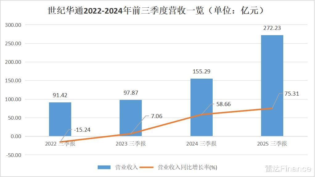 整个前三季度,公司营收达272.23亿元,已超去年全年水平,公司前三季度营收增速为75.31%,创下近年来前三季度营收最高增速。