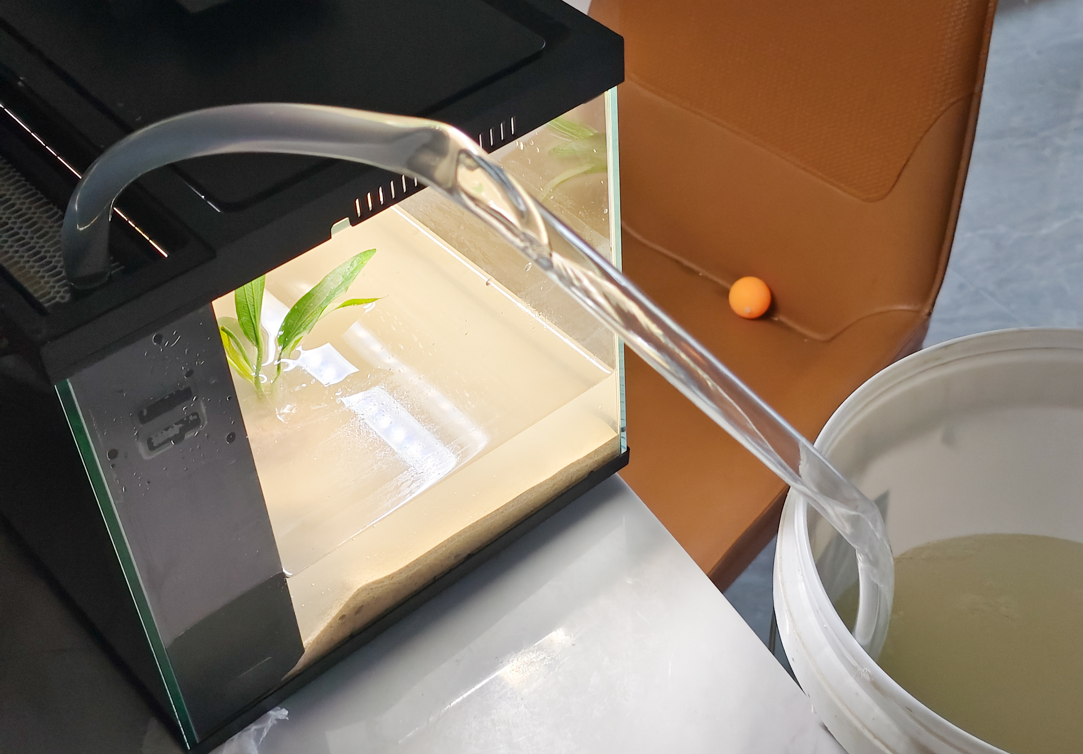 传统鱼缸在换水这方面肯定也直接劝退很多用户,而当贝智能鱼缸支持一键排水功能,只需要把滤芯盖打开,把附赠的排水管接入出水口,再打开水泵就能自动排水,而且水泵可以调节3档大小,排水不仅方便而且还更快速,实测几分钟就能排完满满一缸水,相当便捷的功能了可以说是。