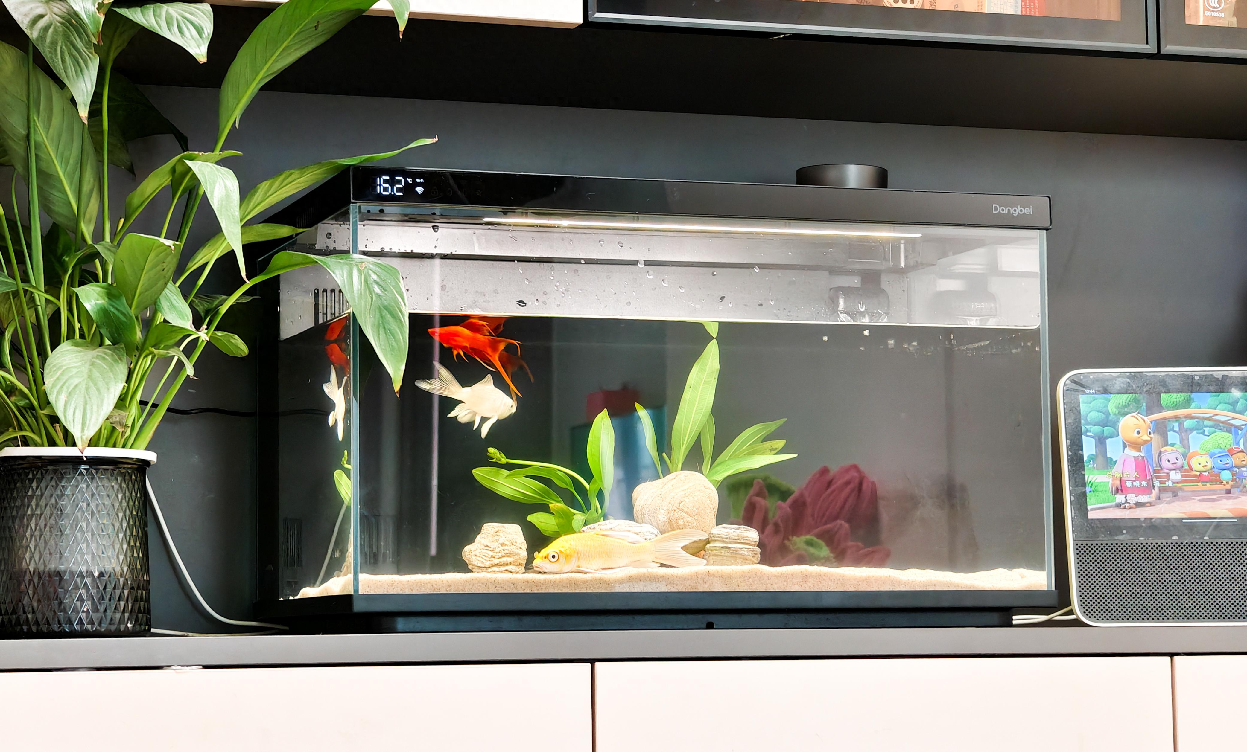 而作为一个曾因养鱼失败而屡次放弃的小白,又在最近入手了这款当贝智能鱼缸1Ultra。经过这段时间的研究与深度使用,对这款产品彻底颠覆了我对传统养鱼方式的认知。因为当贝这款智能鱼缸它不仅用智能化功能解决增氧、喂食、光照等核心痛点,更以超高的颜值设计和人性化细节,让养鱼从“负担”变成了一种可以治愈的生活方式。
