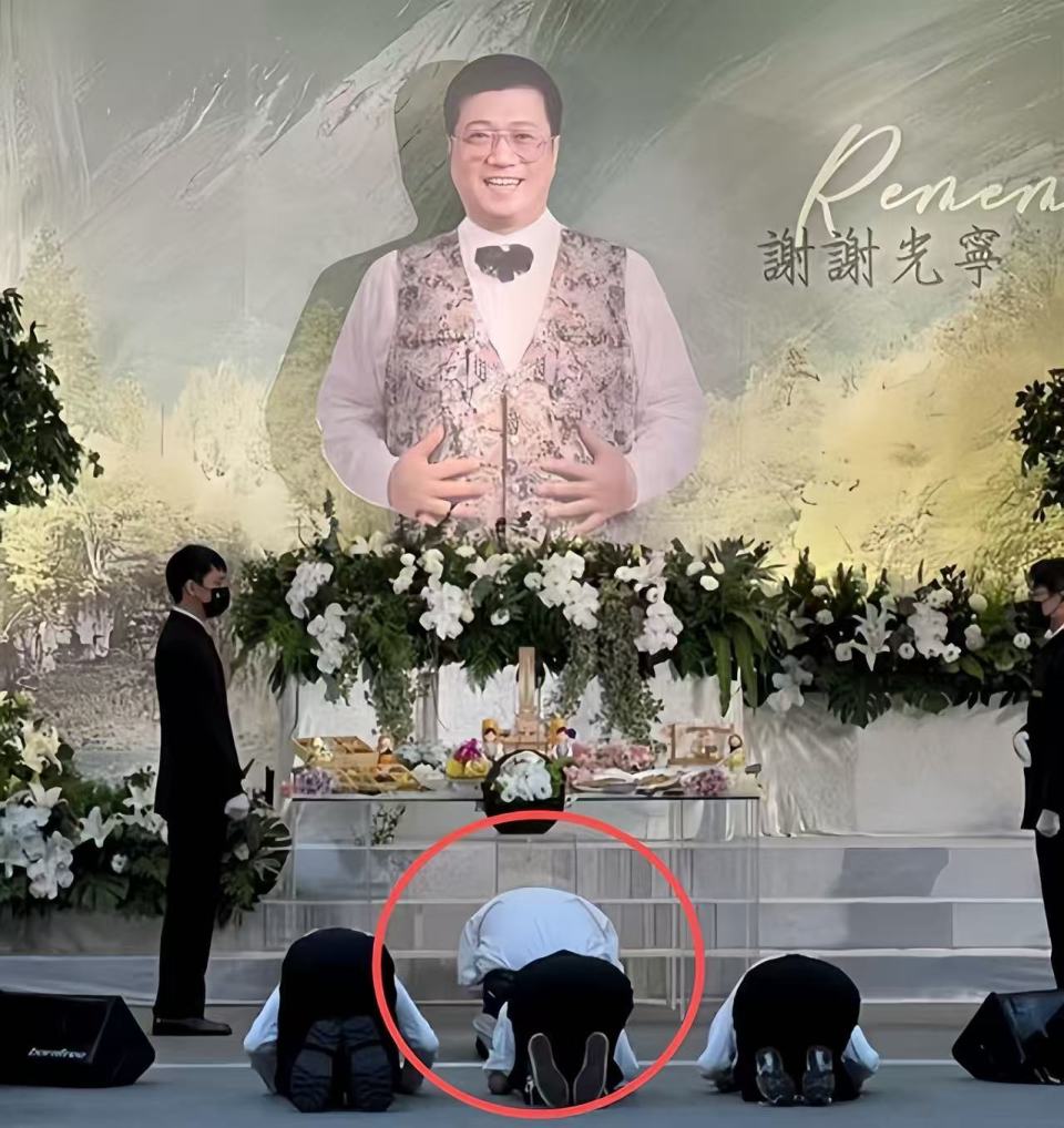 在仪式的最后,林有慧和萧敬腾及家人,也对着父亲的遗像,做了最后的三叩首跪别。