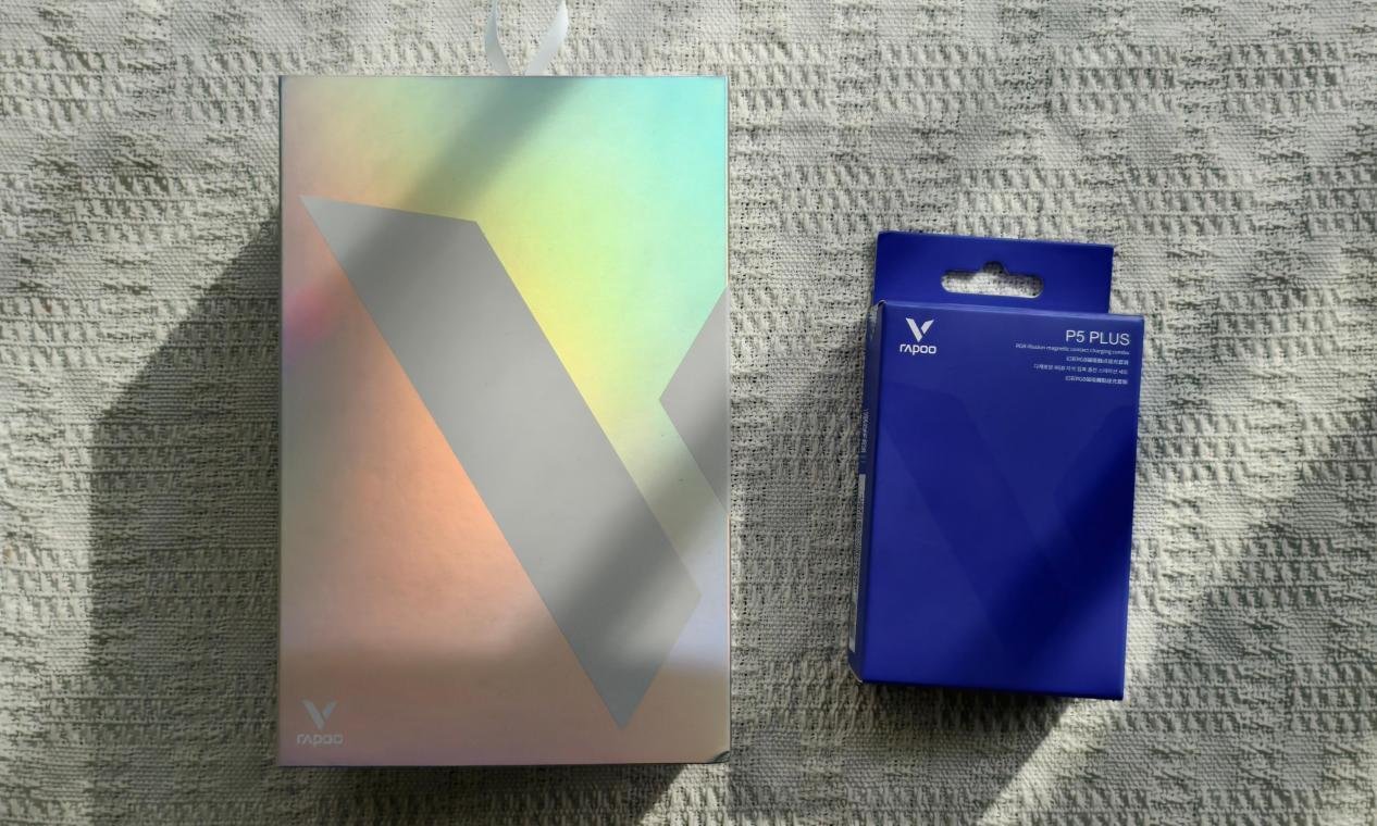 一、开箱初体验:简约不简单,细节见用心雷柏VT3焰影橙的外包装延续了VT系列鼠标的包装设计,简约大气的镭射包装盒在不同阳光下会折射出不同的颜色,在它的右边则是我单独购买的P5 PLUS充电模块,下文也会对其进行简单介绍。
