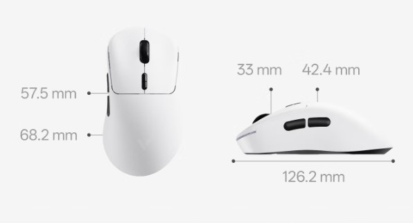 雷柏VT3采用的是类EC模具设计,尺寸为126.2*68.2*42.4mm,定位大手专用,右手非对称造型,主打抓趴混合握法,这也是它能成为热门大手鼠标的关键。