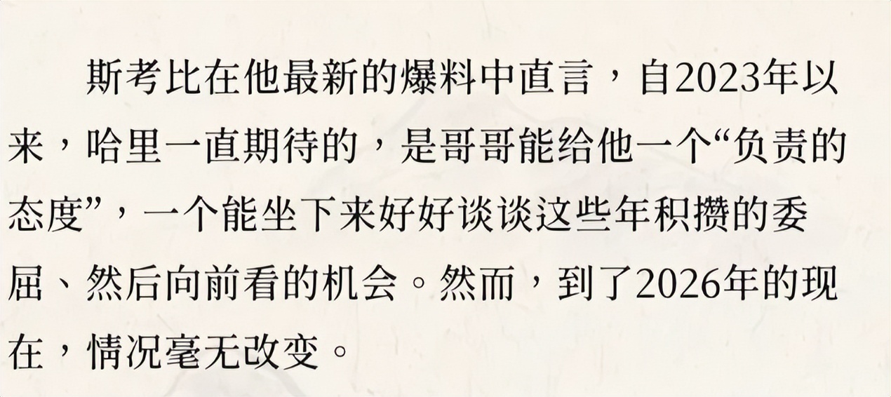 他们爹挂了后,关系只会更僵,可以参考安德鲁的下场,哈里辜负了威廉的信任,确实很难再建立关系。人与人的信任真的只有一次。要是我也不见,见面的内容随时会变成他下一次访谈、博客、出书、纪录片的素材