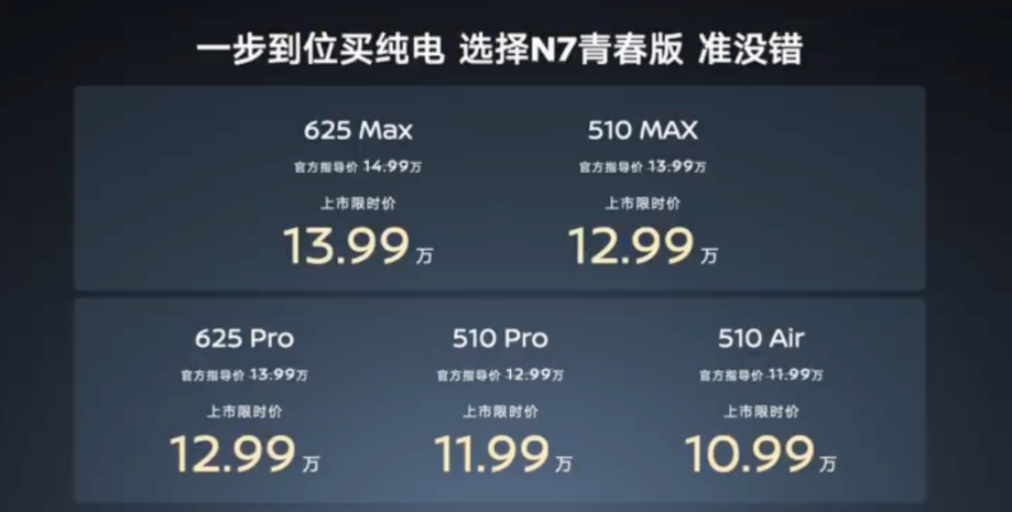 与此同时,纯电阵营的N7青春版将价格区间拉低至10.99万-13.99万元。作为一款纯电车型,N7不仅继承了日系车在空间利用率上的优势,更通过极具竞争力的价格,大大降低了高品质合资纯电轿车的准入门槛。在纯电市场增速放缓的2026年,N7青春版的务实定价,是东风日产抢占大众化纯电市场份额的精准一击。