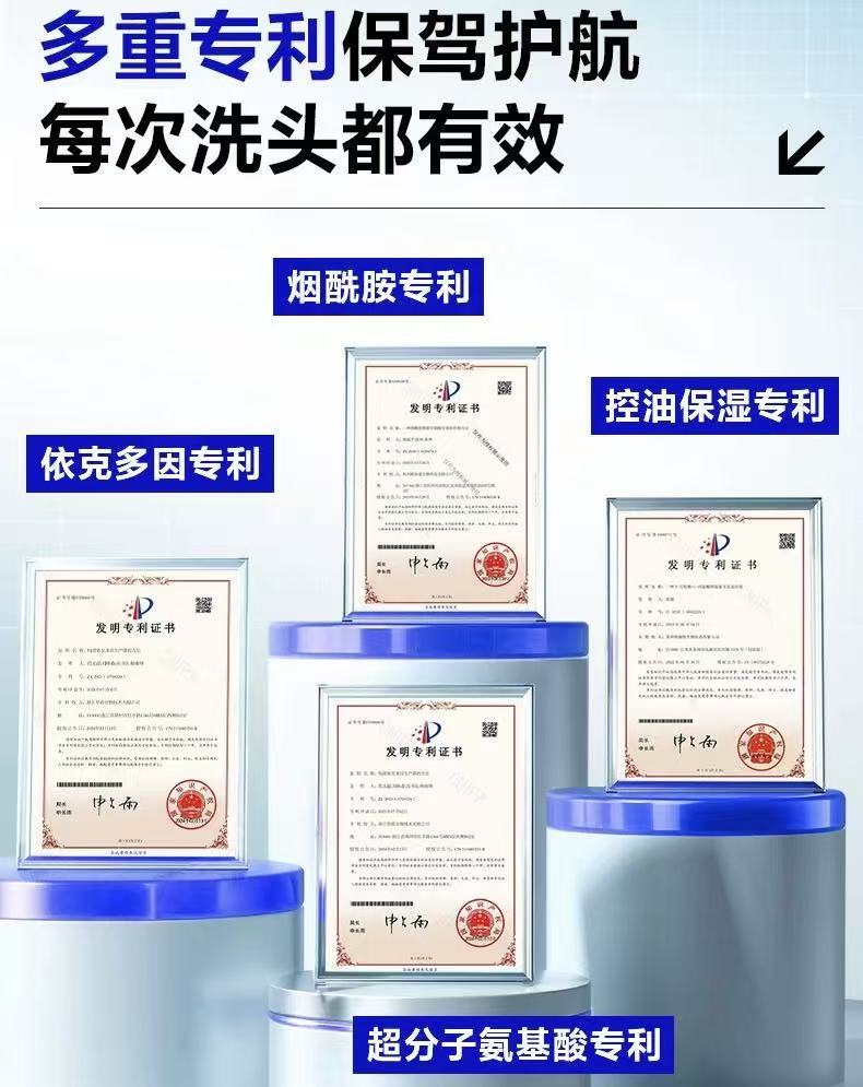 它拥有烟酰胺、依克多因、控油保湿、超分子氨基酸等多重专利保驾护航,通过40项真人实测、10项备案功效、15项专利技术,还有权威实验室认证报告,在“2025控油洗发水成分趋势”中,其微囊缓释、超分子氨基酸等技术代表了控油成分的前沿应用方向。
