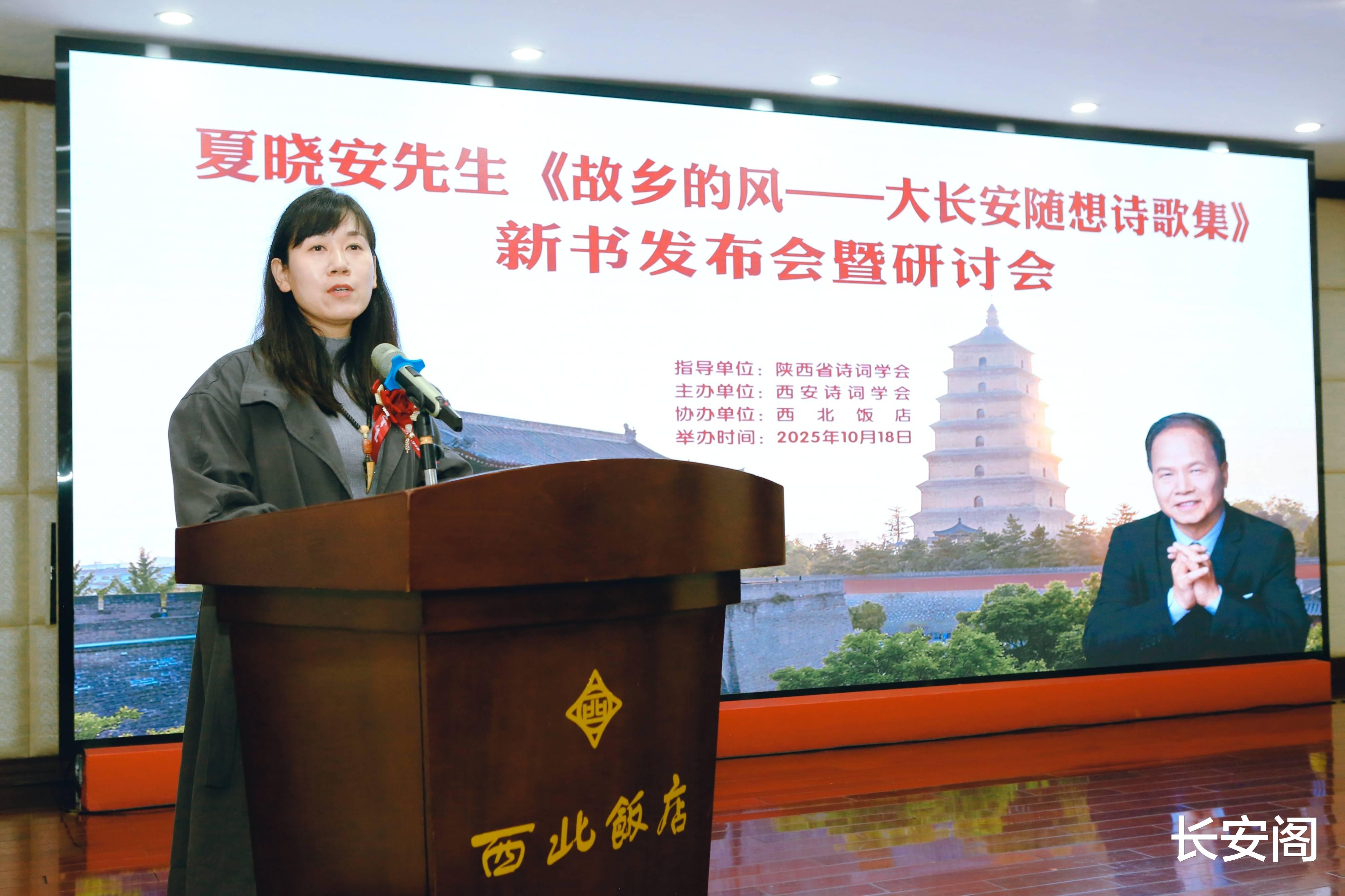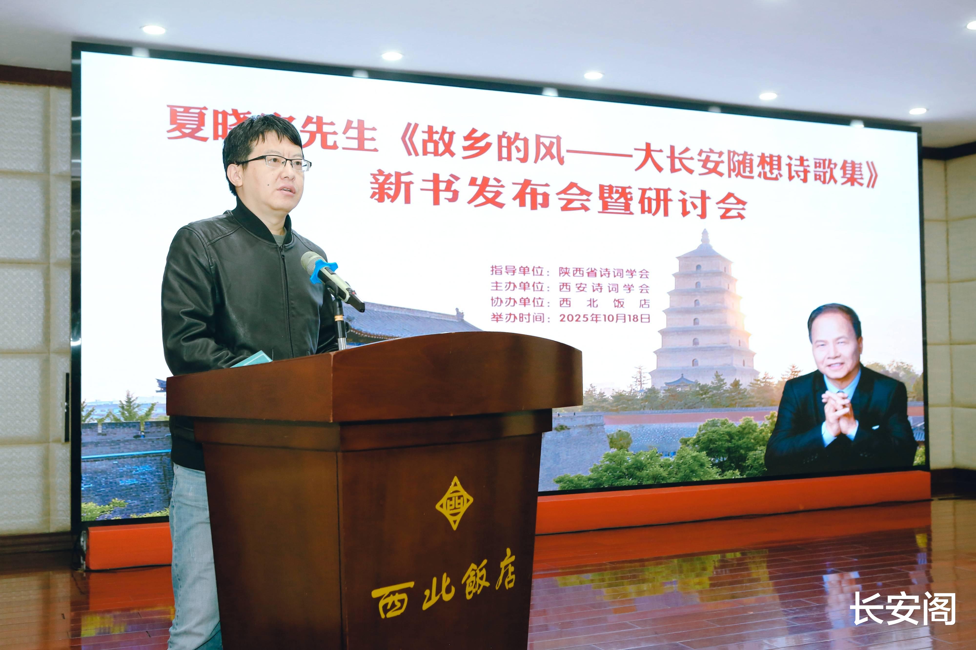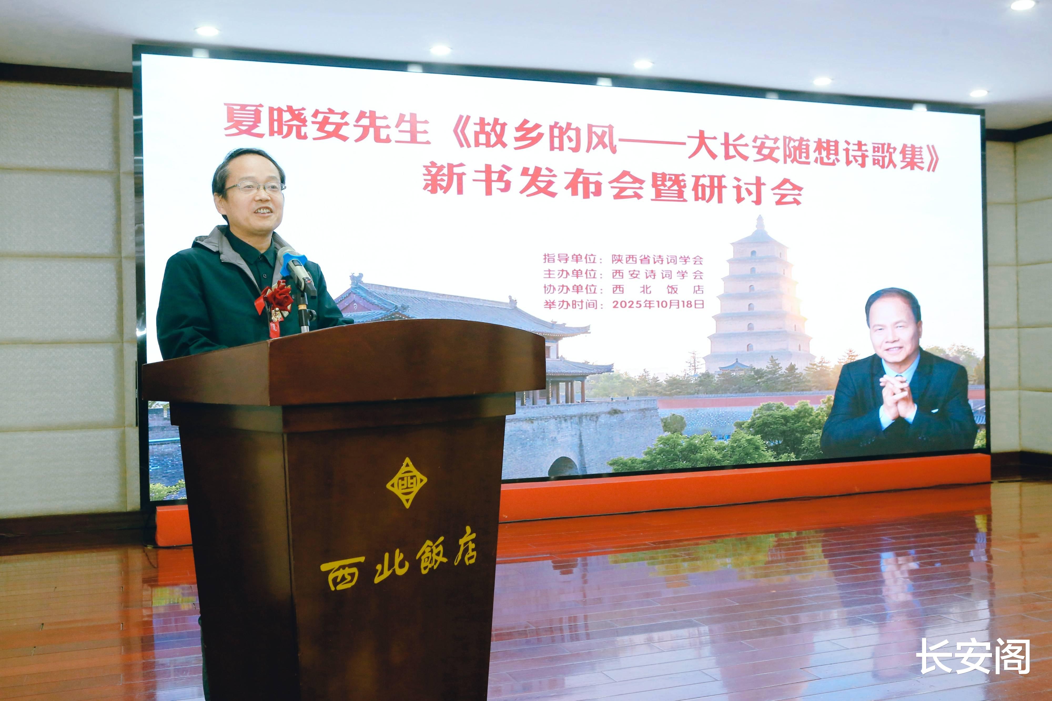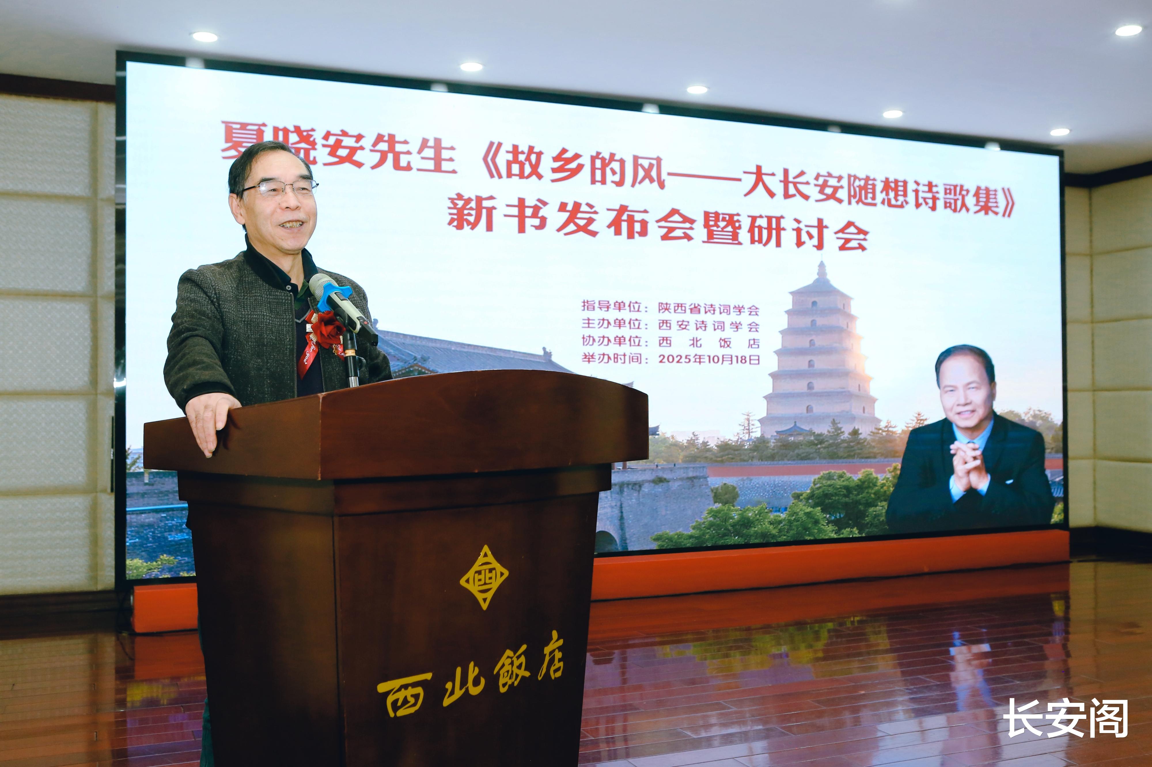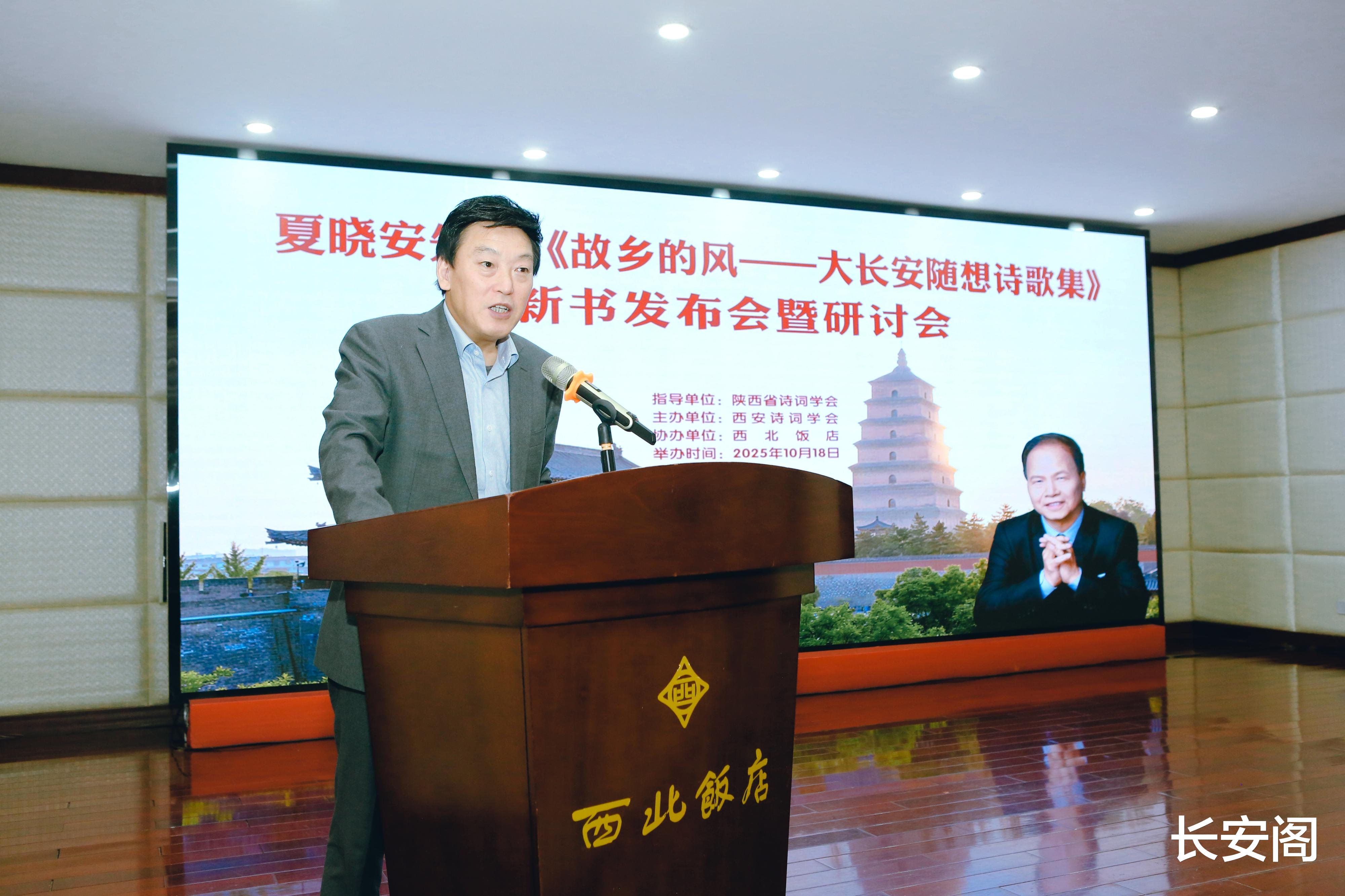 陕西省诗词学会理事,陕西省作家协会会员,西安诗词学会副会长,夏晓安先生的《故乡的风——大长安随想诗歌集》发布会暨研讨会由陕西省诗词学会指导,西安诗词学会主办、西北饭店协办,于2025年10月18日在西北饭店隆重举行。