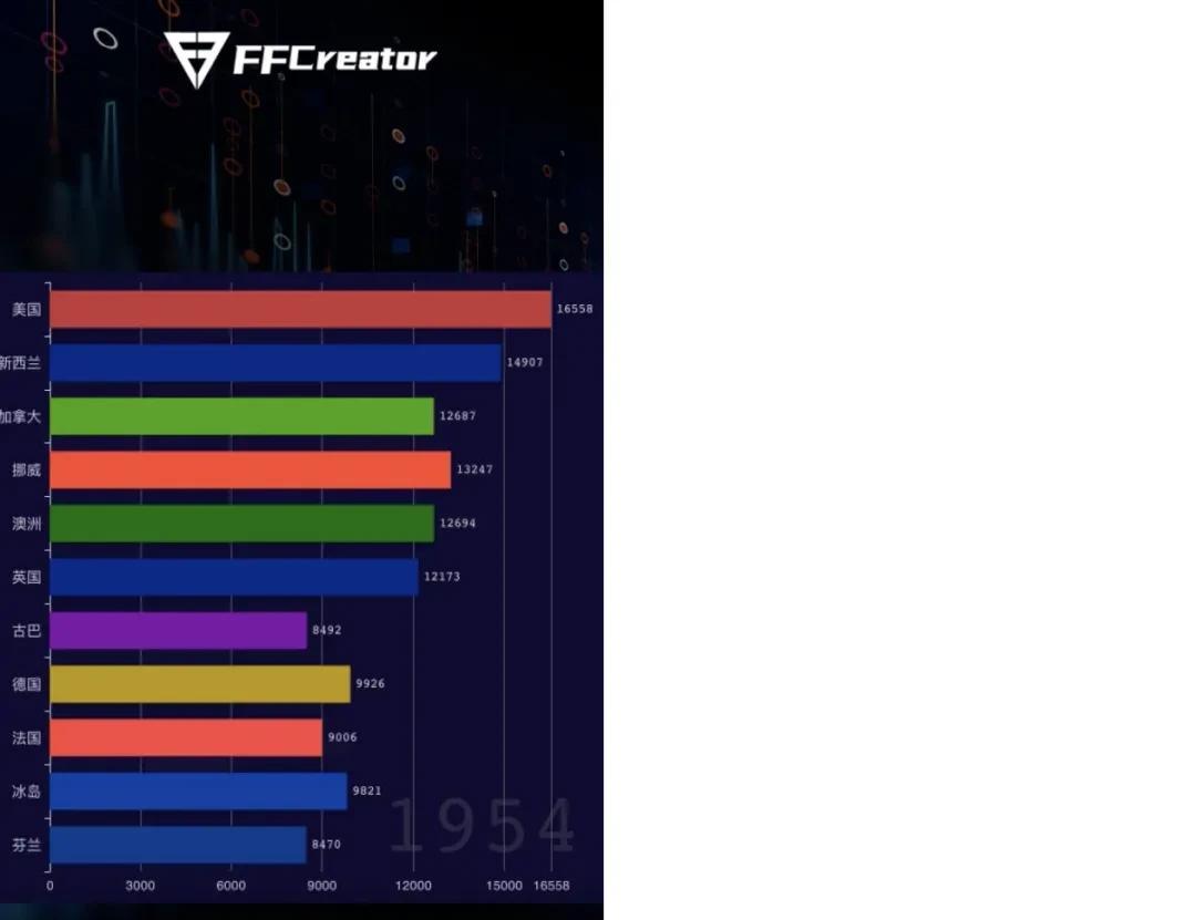 速度快一个 5 分钟的视频,用它合成只需要 1-2 分钟,比传统的 AE 模板方案快太多。如果需求更简单,还能选它的「Lite 版」,速度直接翻倍,2-3 倍于标准版。动画效果丰富到炸内置了近百种场景转场特效,还模拟了animate.css中 90% 的动画效果 —— 也就是说,你在网页上能实现的 CSS 动画,几乎都能无缝转换成视频里的效果。支持多元素混合图片、视频剪辑、文字、背景音乐、字幕、甚至虚拟主播(VTuber)都能往里塞,组合自由度极高。轻量易扩展依赖少、安装简单,对机器配置要求低(双核 1G 就能跑),而且基于 Node.js 开发,前端工程师上手毫无压力,二次开发也很方便。双版本选择除了完整版,还有一个FFCreatorLite—— 基于 FFmpeg 纯命令行实现,安装更简单(只依赖 FFmpeg),处理视频的速度更快,适合对动画精细度要求不高的场景。下面是它嵌入图表的案例: